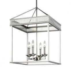 Woodruff 4-Light Polished Nickel Modern Lantern Hanging Cage Candlestick Chandelier by Feiss