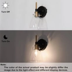 This Modern Brass Wall Lighting Fixtures, 1-Light Black Wall Sconce with Cone Clear Glass Shade is designed to create a new-fashion, low-key but high-grade home decoration. Designed like a torch, this sleek modern wall lighting fixture with bowl glass shade is perfect for your bedside, entryway, hallway, living room or staircase, providing suitable brightness. The great combination of vintage black and sparkling brass gold will blend in any of your house decorations, making your space clearer and brighter.