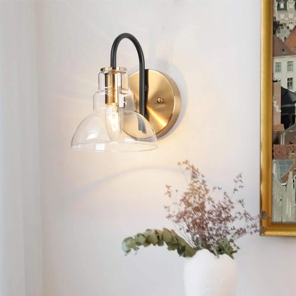 This black and brass gold barn light is a frequently-used fixture for various places in your house. Vintage black combined with shiny plating brass gold makes the whole wall lamp vintage and sophisticated, ideal for any modern, contemporary, farmhouse, and industrial house style. With a U-shaped curve design and special bowl shade, the stylish modern lighting fixture will be an eye-catching addition in your hallway, entryway, staircase, bathroom, bedroom, living room, kitchen, and any other suitable place, adding comfortable brightness as well as decorating your space beautifully.