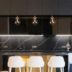 - DIY modern gold pendant light: the simple hanging light is better installed with 2 or 3 in a row at the same or different heights to create the perfect visual effect