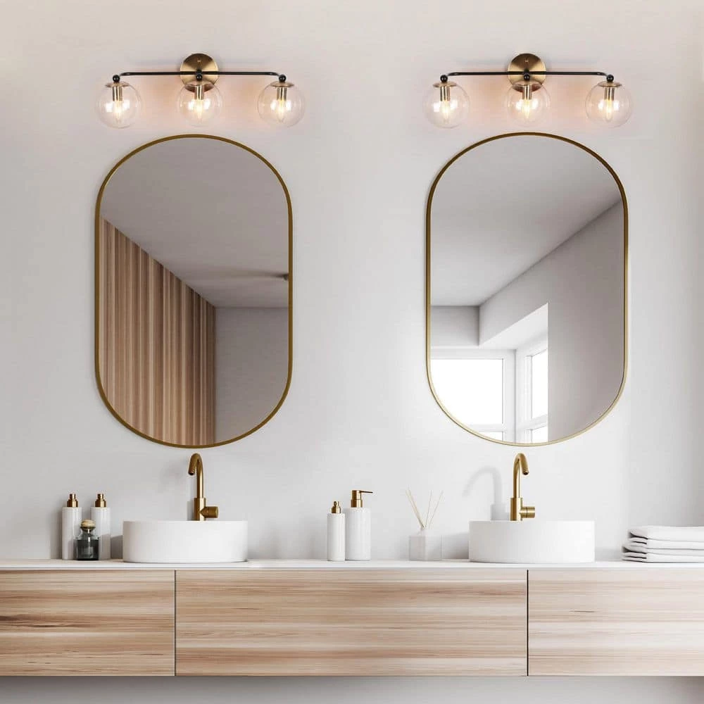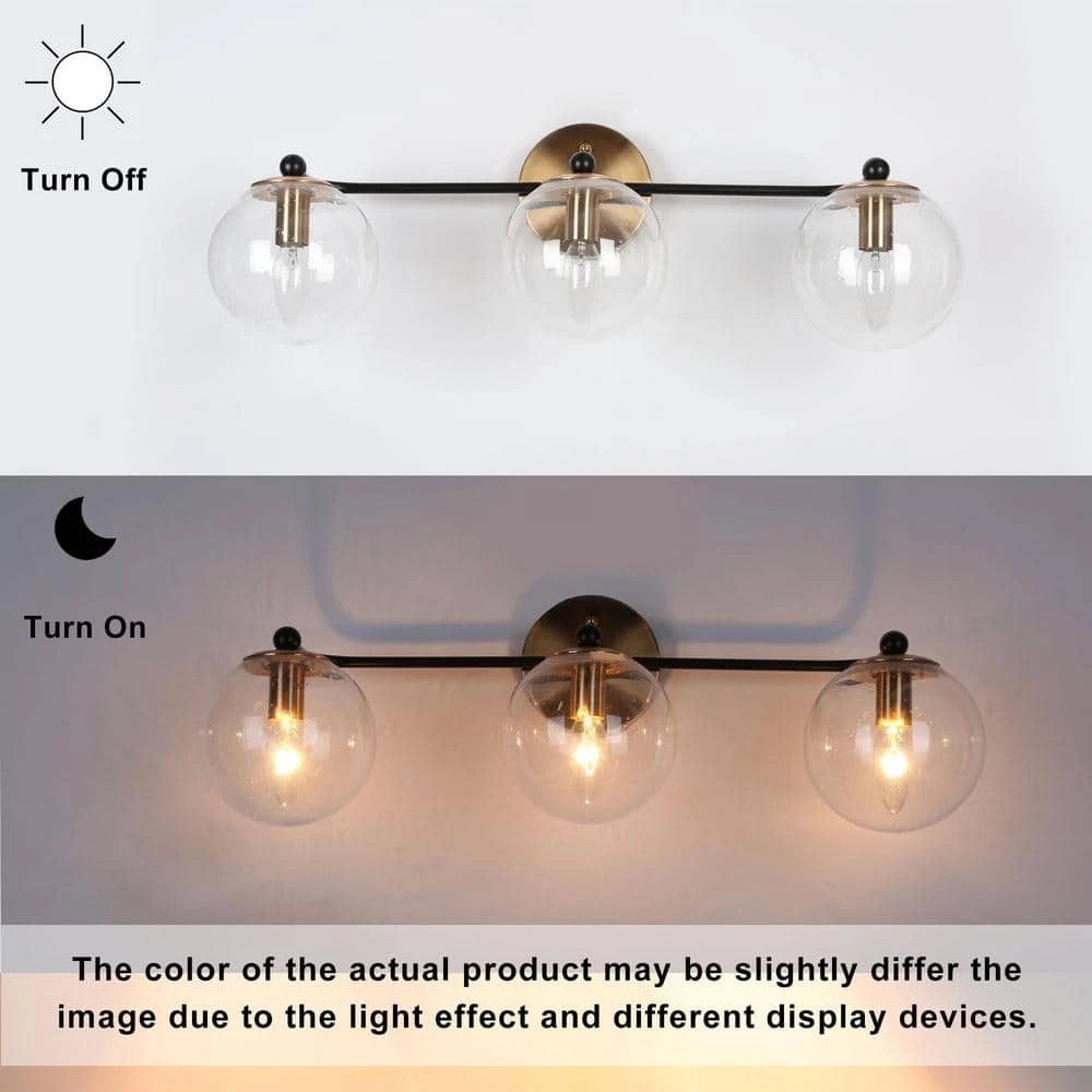 Featuring an innovative black frame with brass gold accents, this 3-light bath light is adorned with seeded globe glass shades, creating a luxurious yet modern look for various house decors. Three max 40-Watt light bulbs (not included) with an E12 base ensure plenty of fantastic lighting in your bathroom, powder room, hallway, entryway, and any damp area. Just to give a luxury presence to your sweet home with this modern yet vintage brass lighting fixture.