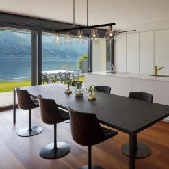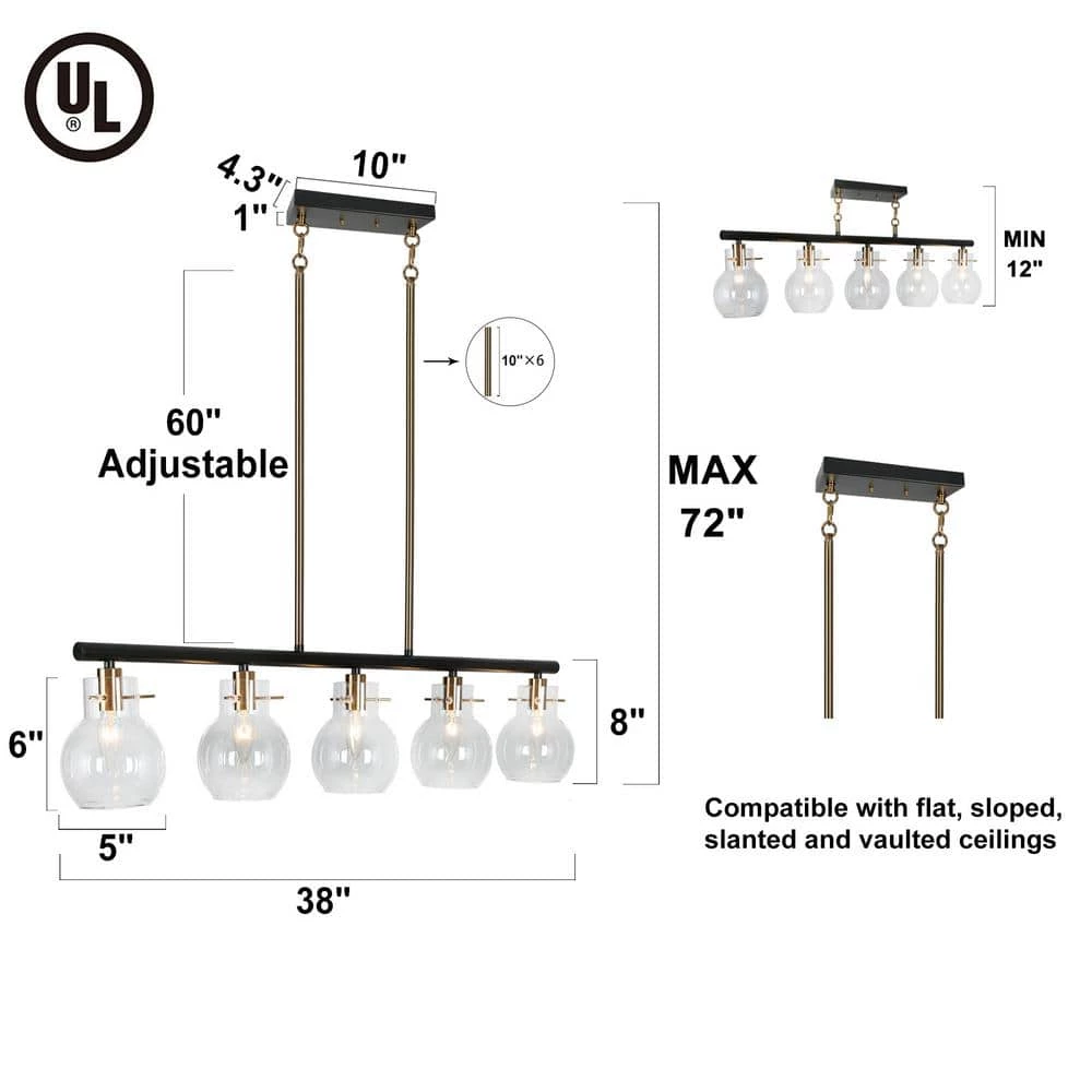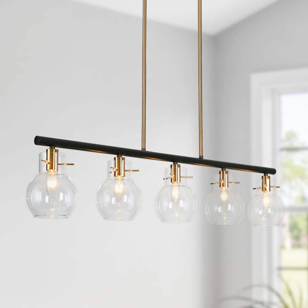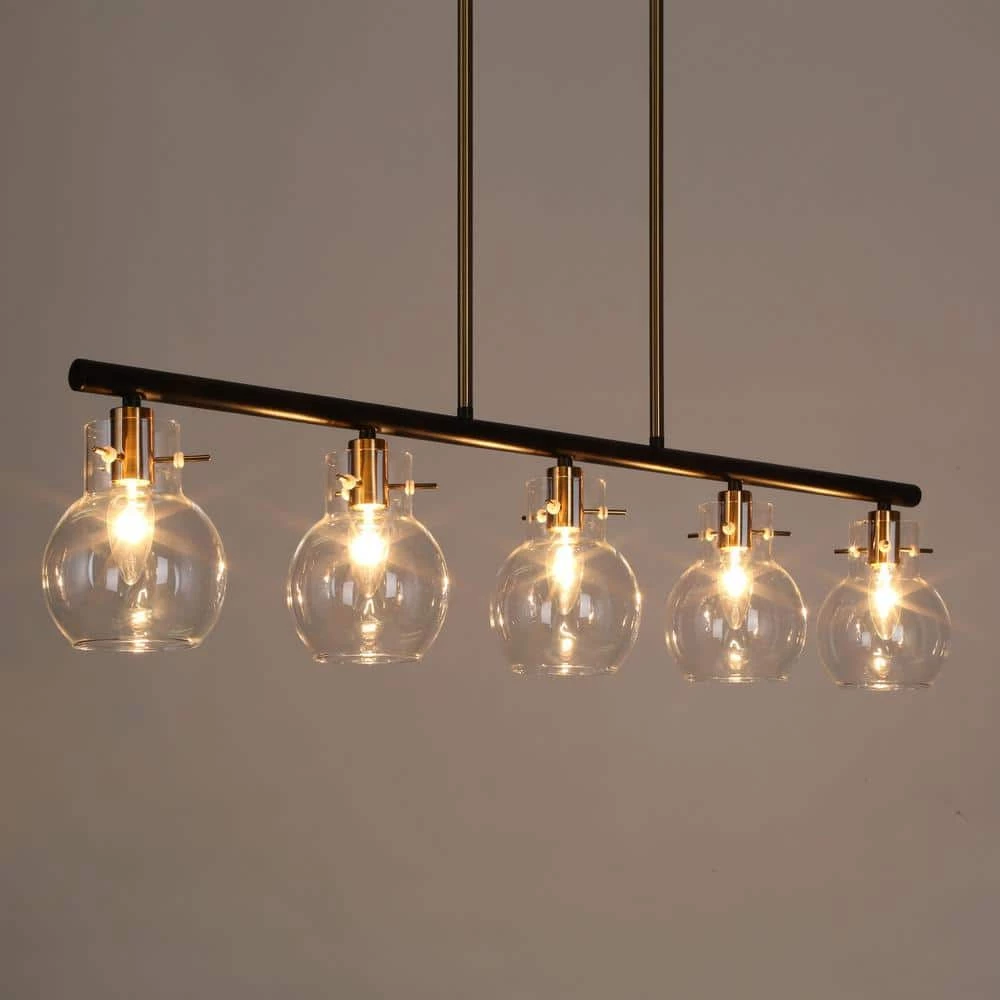Create a new-fashioned, high-class, and futuristic house decoration and modernize your space with this ingenious linear chandelier lighting. Featuring crystal-clear globe glass shades, this contemporary chandelier is perfectly suitable for your kitchen island, dining room, foyer, living room, and entryway, emitting bright transparent lighting. With adjustable down rods, the black pendant hanging light can be installed at a suitable height to create a perfect visual effect, making your house decoration look simple yet very clear and bright.