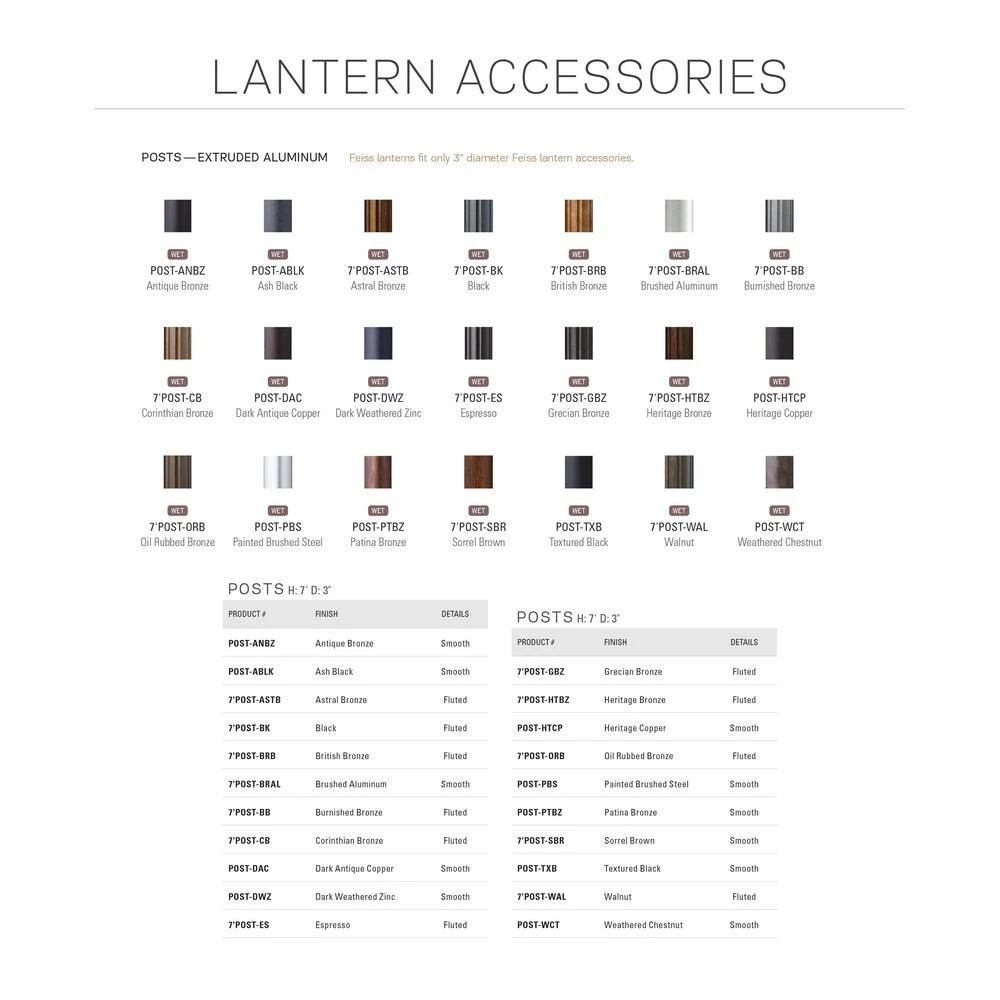 The Feiss Lighting post accessory creates a warm and inviting welcome presentation for your home’s exterior. Utilize this 3 in. Dia post to coordinate with Feiss Lighting post top lanterns. This is the post only and does not include the base or light top.