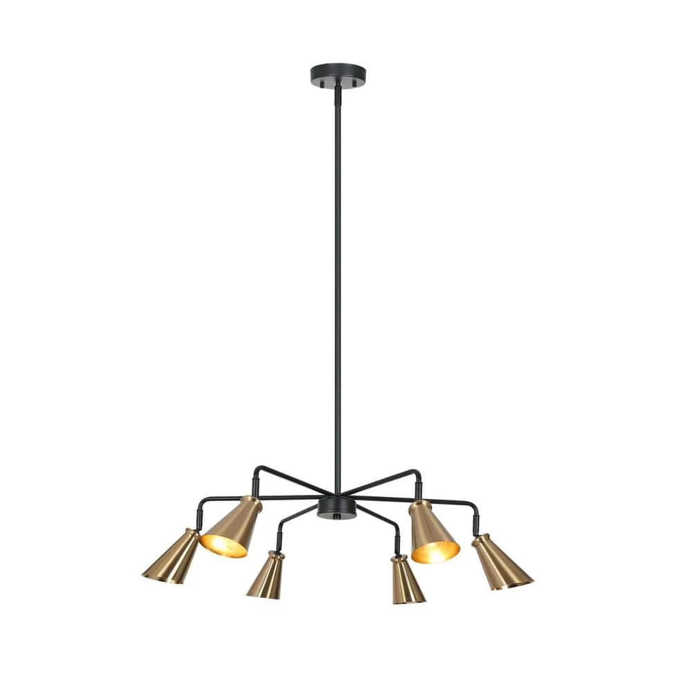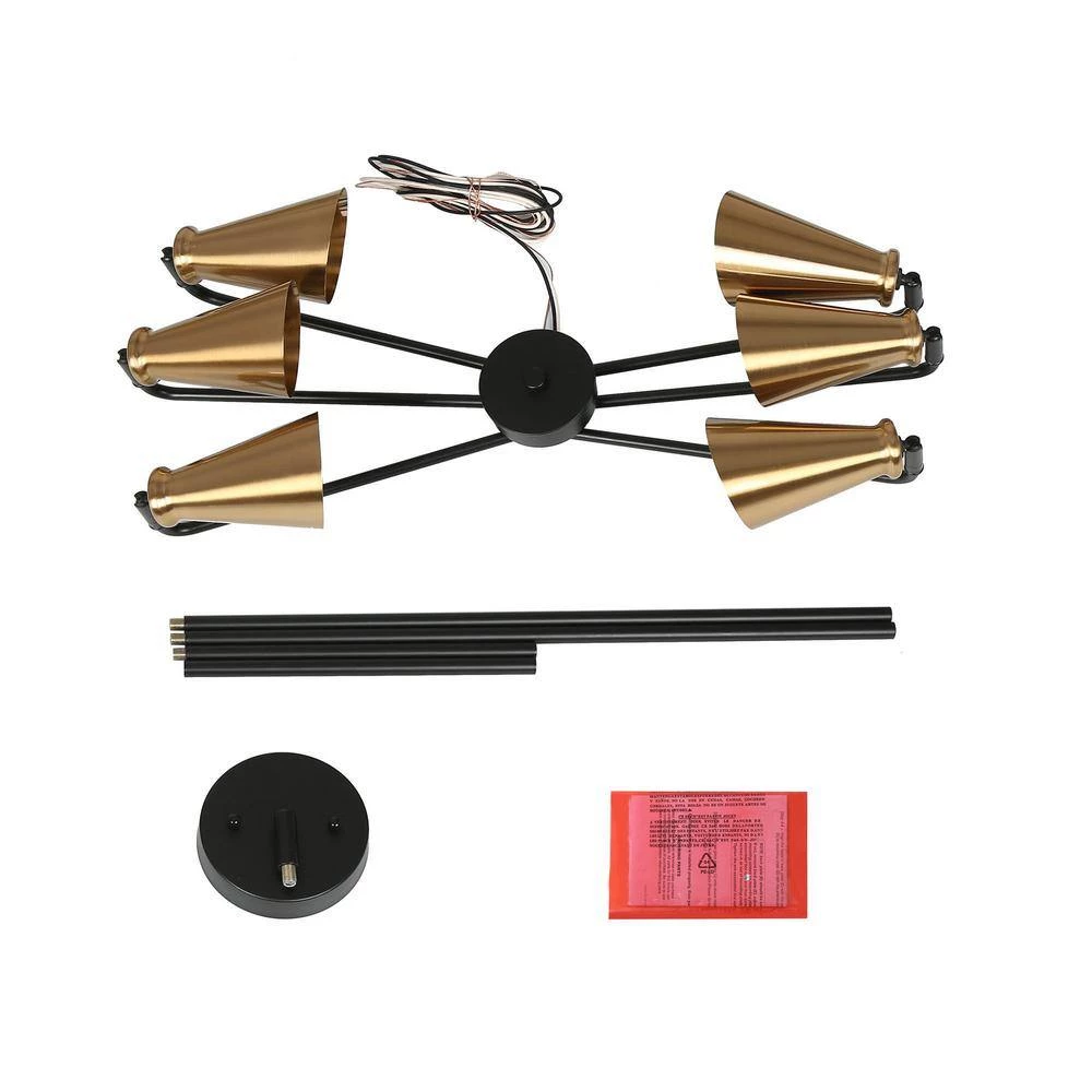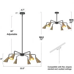 Minimalist linear design and unique polished cone shades create a great modern simple luxury and futuristic decoration. With adjustable lamp heads, the 6-light chandelier lighting is a trendsetting light fixture for your dining room, living room, kitchen, and foyer to provide directional focused brightness. Highly polished brass and vintage black will also be a great combination to highlight any modern, contemporary, transitional, and farmhouse styles. Choose this futuristic island chandelier and enjoy a new way of house decoration!