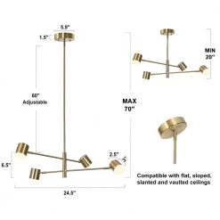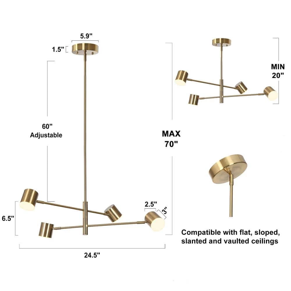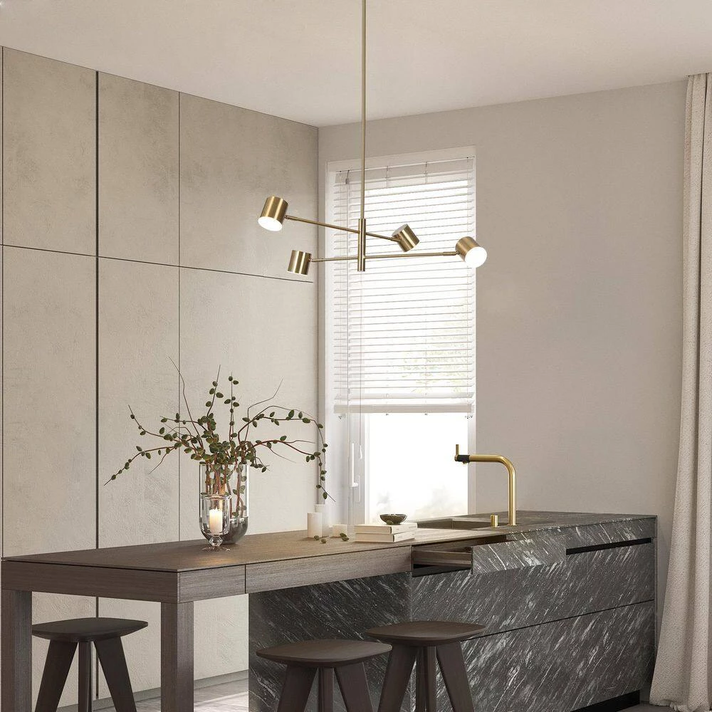 Minimalist design with eye-catching polished brass finish creates a new stylish 4-light chandelier lighting to modernize your house. Futuristic design and eco-friendly integrated LED lights will be the trendsetting choice for any modern, farmhouse, transition style, leading a sustainable and healthy life. Compared with typical incandescent lighting fixtures, the integrated LED chandeliers and pendants save more than 80% of energy and can be used for 6 to 12 years without changing any light bulb. This simple island chandelier is nice to embellish and brighten your kitchen, dining room, hallway, entryway, and more, aiming to make a high-class, simple, yet sophisticated home decoration for you.