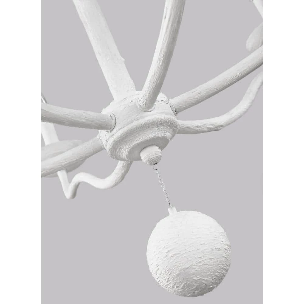 The Annie lighting collection by Feiss is simple and chic and delights with warm, welcoming, Provincial charm. The rustic aesthetic of the new Plaster White finish perfectly enhances the texture and beauty of this humble, traditional lighting design. A decorative bead drops from the center of each fixture, adding a fanciful touch to this stately design. Alternatively, the chandelier may be installed with a round bottom cap, for a cleaner look. The simple silhouette of these light fixtures makes them versatile to fit in a wide range of decor and the rustic finish makes them particularly ideal for living rooms, dining rooms and bedrooms with casual, traditional decor, European farmhouse design or the shabby chic look.
