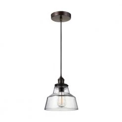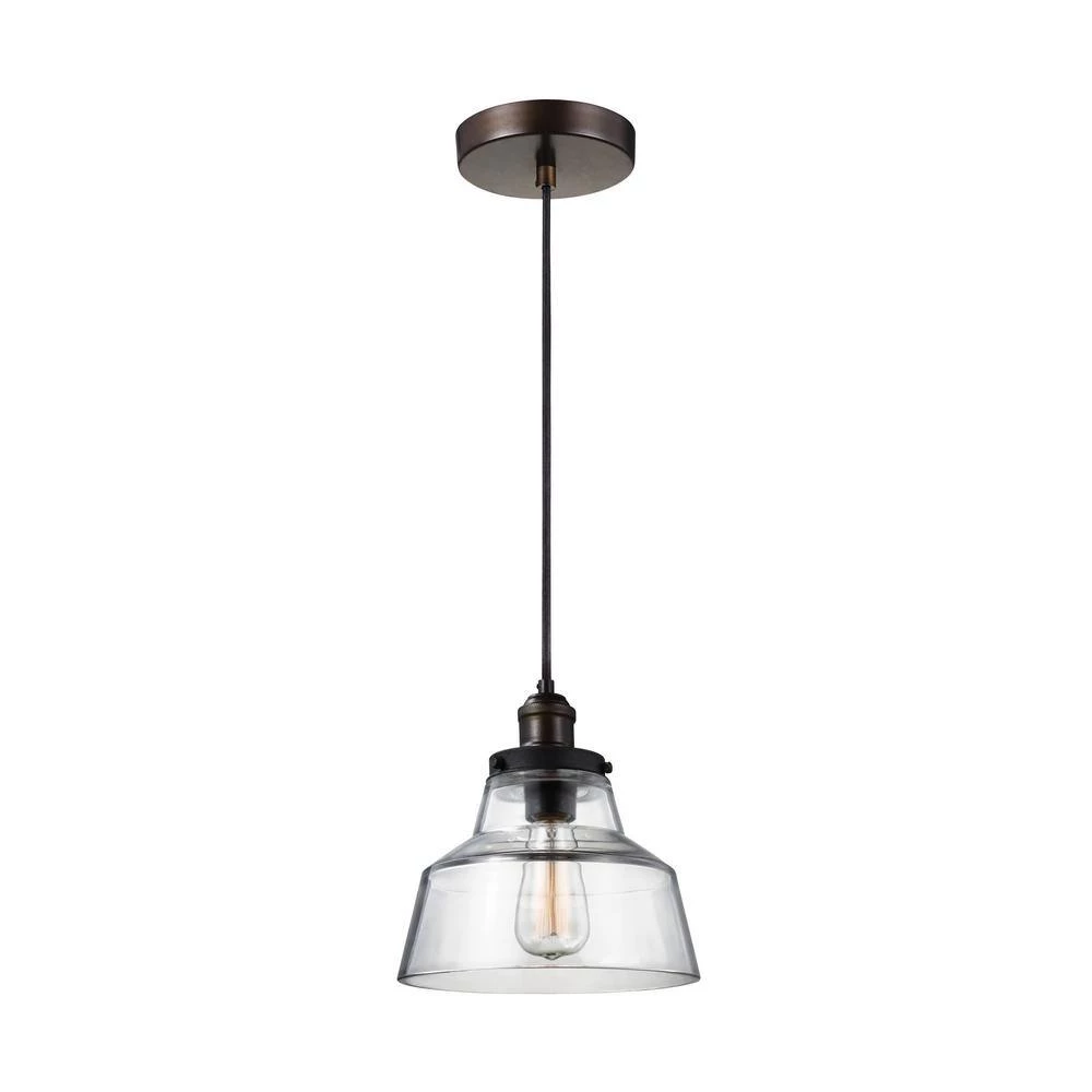 The Feiss Baskin one light pendant in painted aged brass / dark weathered zinc enhances the beauty of your home with ample light and style to match today’s trends. The Baskin lighting collection by Feiss is an ultra-clean, modern take on the classic antique socket pendant light. In three, iconic silhouettes (cone, chimney and dome), the Clear Thick glass 1-light pendants bring warmth and sparkle, while beautifully complementing all types of surroundings. The finishes offered include Polished Nickel for a more contemporary feel, as well as a unique combination of Painted Aged Brass with Dark Weathered Zinc which works well in a more rustic decor. Within the sleek and elegant shades, an incandescent Edison-style lamp (not included) becomes a dramatic focal point.