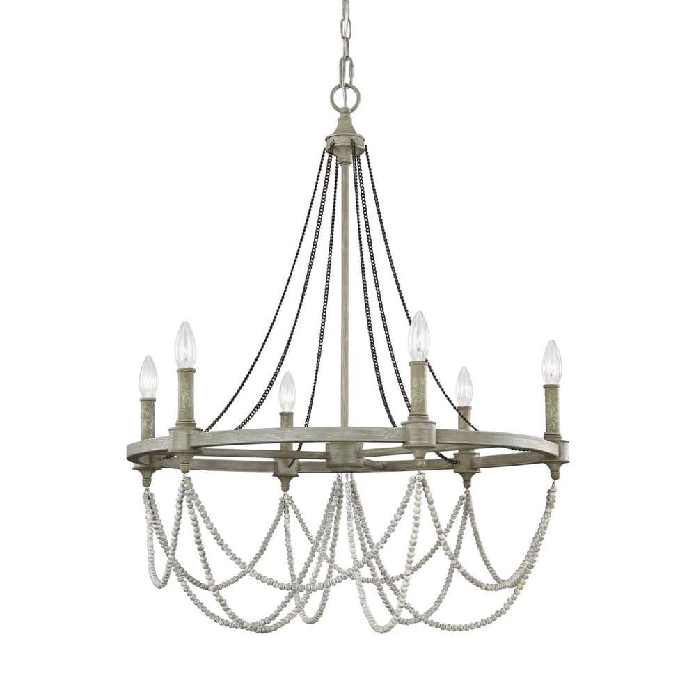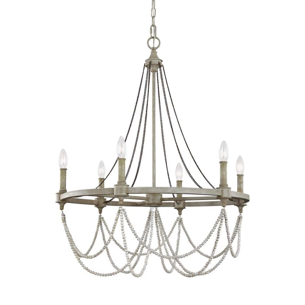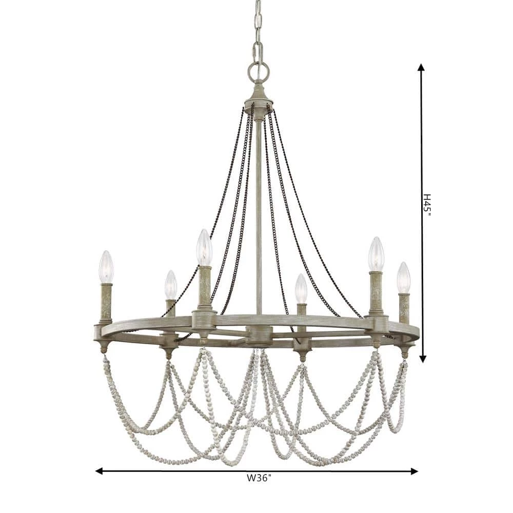 - Classic 6-light chandelier updated with rustic finishes and a unique combination of wood and crystal beads to add warm, time-worn design elements to your decor