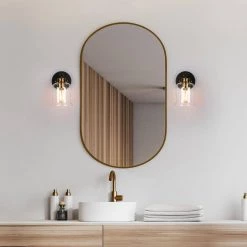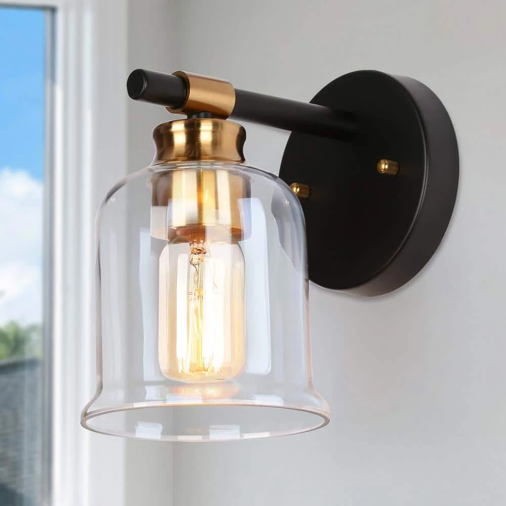 Inspired from the classic bell design, the brass gold wall sconce is a great update for transitional modern house style. The highly polished gold finish is made by plating technology, ensuring long-lasting luster. The linear black arm and round canopy perfectly embody a vintage feeling which makes the delicate wall lamp more inclusive for various house styles, highlighting any of your house decorations. The transitional round vanity light is a fabulous decorative and functional fixture to embellish your space and provide ample clear brightness.
