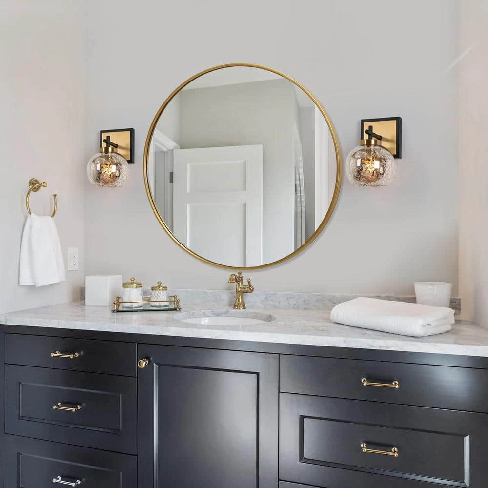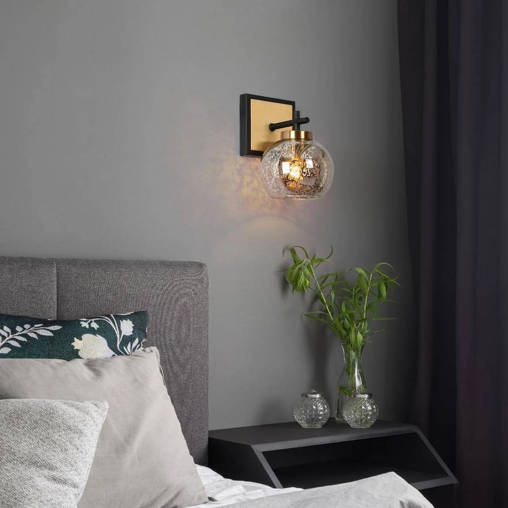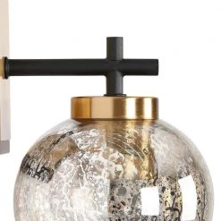 Featuring unique art glass shade, this Modern 1-Light Brass Gold Indoor Wall Sconce, Globe Mercury Glass Wall Light, Transitional Black Bathroom Vanity Light will be a nice option for you to enhance any modern, farmhouse, contemporary, or transitional house decoration. The bottom-opening globe mercury glass shade creates beautiful patterned lighting effects, full of artistic beauty. The distinctive design makes the bath lighting not only a lighting device to provide focused illumination but also a decorative fixture to embellish your bathroom, powder room, entryway, hallway, stairway, living room, and kitchen. Believe this simple wall sconce lighting will enhance and refresh your house decor!