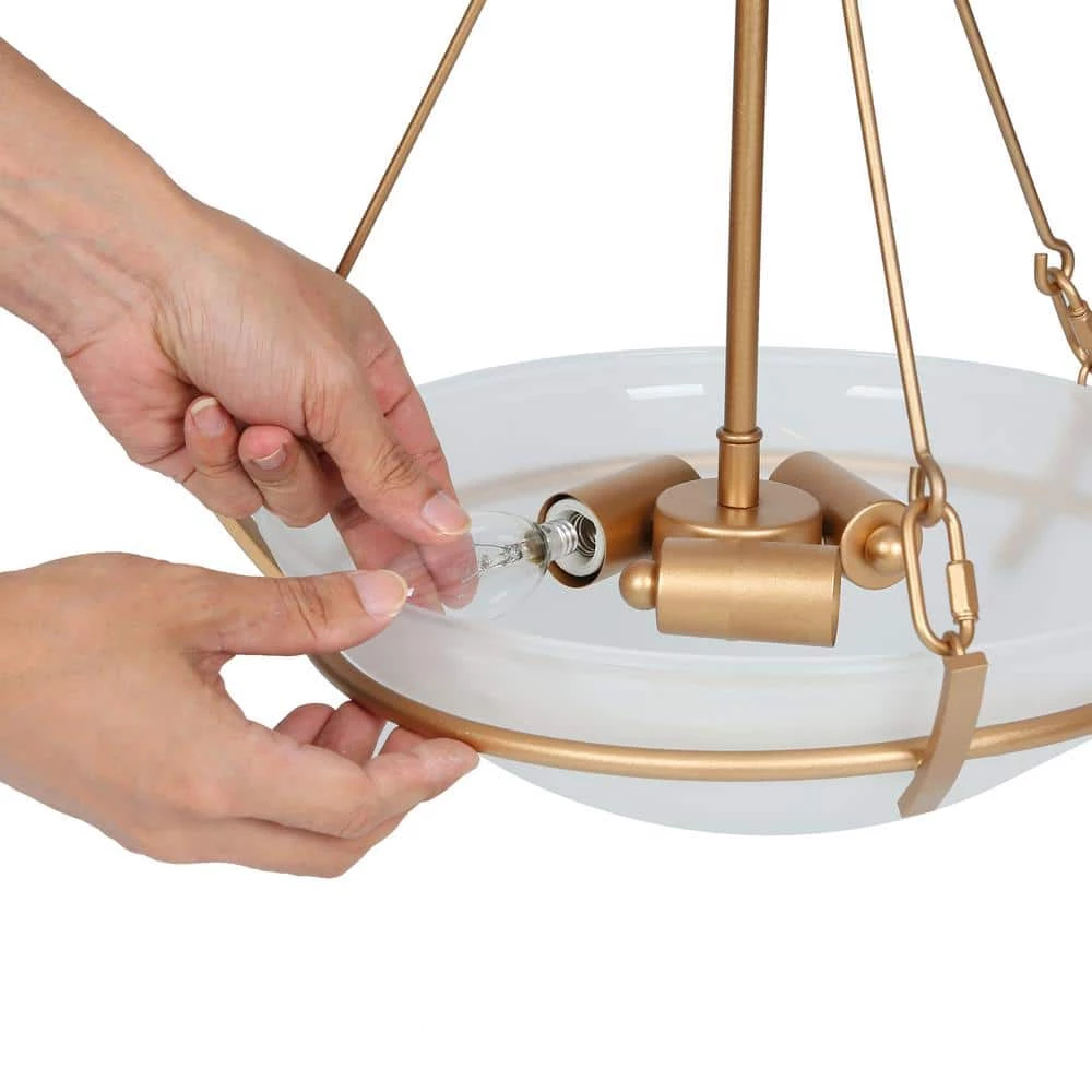 The golden chandelier reflects the luxurious texture of metal, which is advanced but not too complicated and has a different atmosphere than other chandeliers. This cute chandelier not only brings a rich light source and vision but also looks extraordinarily magnificent against the backdrop of the story height. You can put three 40-Watt maximum E12 bulbs (not included) to light up your room. This light fixture can make your bedroom, dresser, living room, entryway, hallway, and home office more sophisticated.