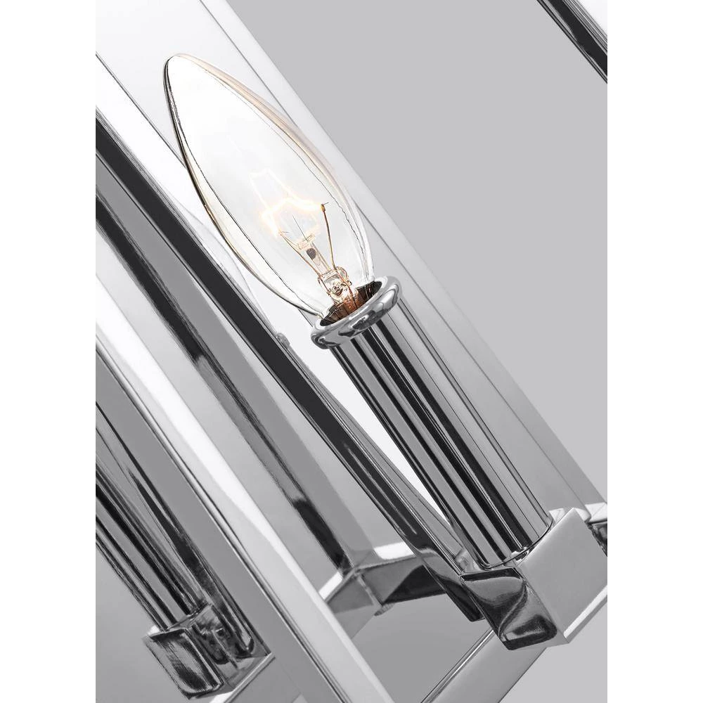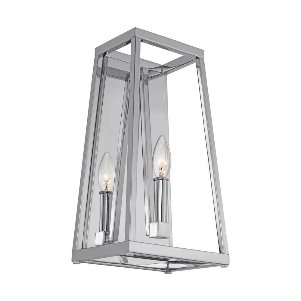 The Feiss Conant 1-light wall sconce in chrome offers shadow-free lighting in your powder room, spa, or master bath room. An updated take on a classic lantern pendant with an open frame and crisp architectural lines. Easily made more energy efficient with a LED Candelabra replacement bulbs (purchased separately).