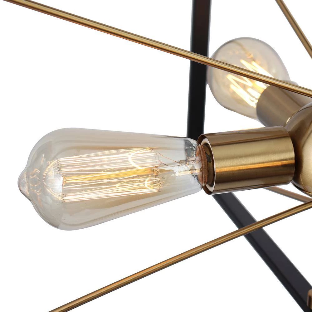 - Minimalist brass gold and black chandelier lighting with an industrial flair makes your house decor simple yet sophisticated