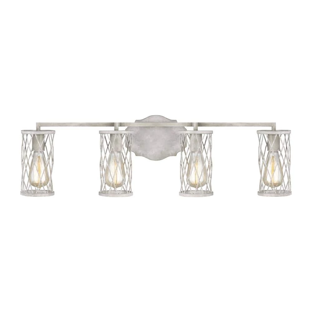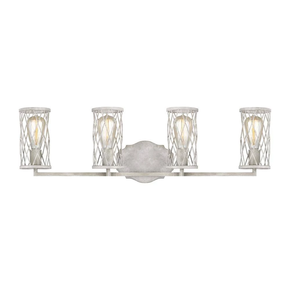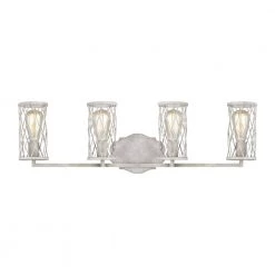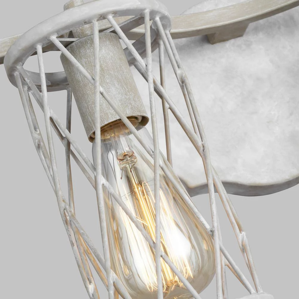 The Feiss Cosette light in French Washed Oak / Distress White Wood provides abundant light for your bath vanity, while adding a layer of today’s style to your interior design. Cosette bath vanities are a bow to French Country style with latticed cage diffusors and finely sculpted mounting plates finished in Drif2od White with stems finished in textured French White Oak. Traditional, French Country-inspired silhouettes.