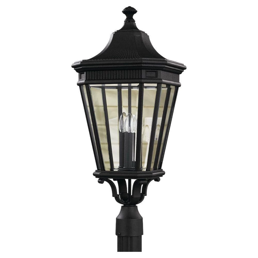 The Sea Gull Lighting Cotswold Lane 3-light outdoor post top in black creates a warm and inviting welcome presentation for your home’s exterior. This Cotswold Lane outdoor lighting post combines function and style. This fixture is a great choice for a do-it-yourself project.