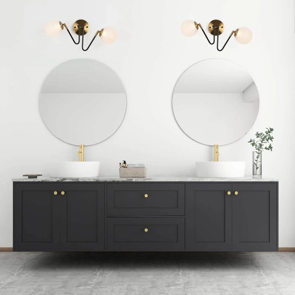 With 2 swivels at ends enable this wall lighting heads adjustable to your desired direction. 17 in. W is perfect for any of your master of small rooms. Matte black and brass plated finish create contemporary yet romantic atmosphere any bath and vanity setting in mid-century, modern and transitional interiors.