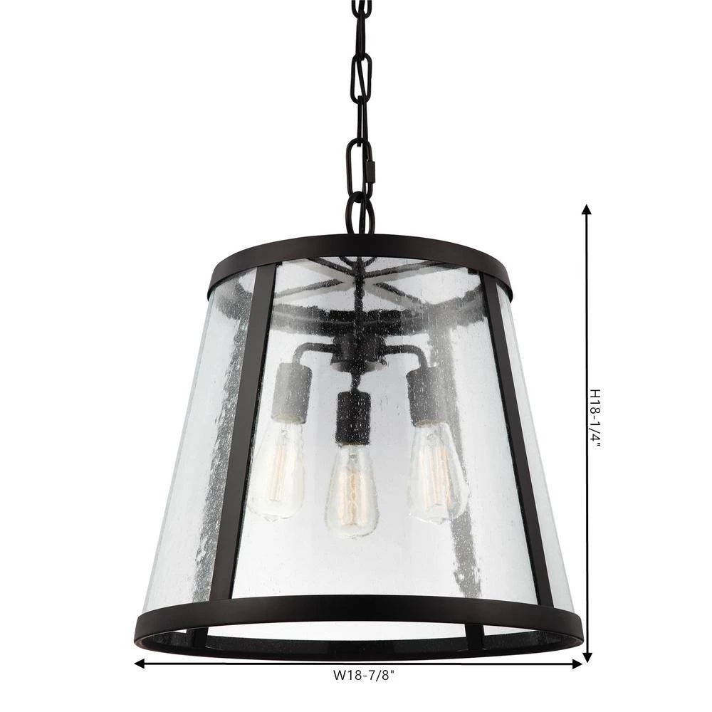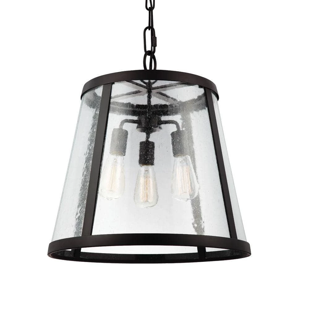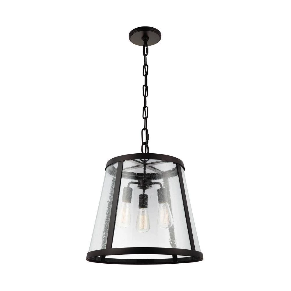 The Feiss Harrow 3-light indoor pendant in oil rubbed bronze enhances the beauty of your home with ample light and style to match today’s trends. Combining the traditional profile of a tapered shade with on-trend Clear Seeded glass, the sleek frame and the square-linked chain give the Harrow pendant light collection by Feiss an elevated, contemporary transitional look. The wall sconce is delivered with 2 glass options, Clear Seeded and Opal Etched, for the customer’s choice to customize. Both Oil Rubbed Bronze and Polished Nickel finishes are available to create completely different looks. The assortment includes a 1-light mini-pendant, 1-light and 3-light Pendant, a 2-light flush mount ceiling fixture, as well as a 1-light wall sconce.