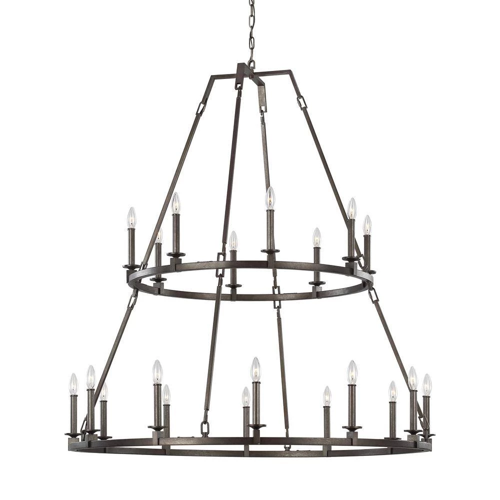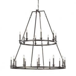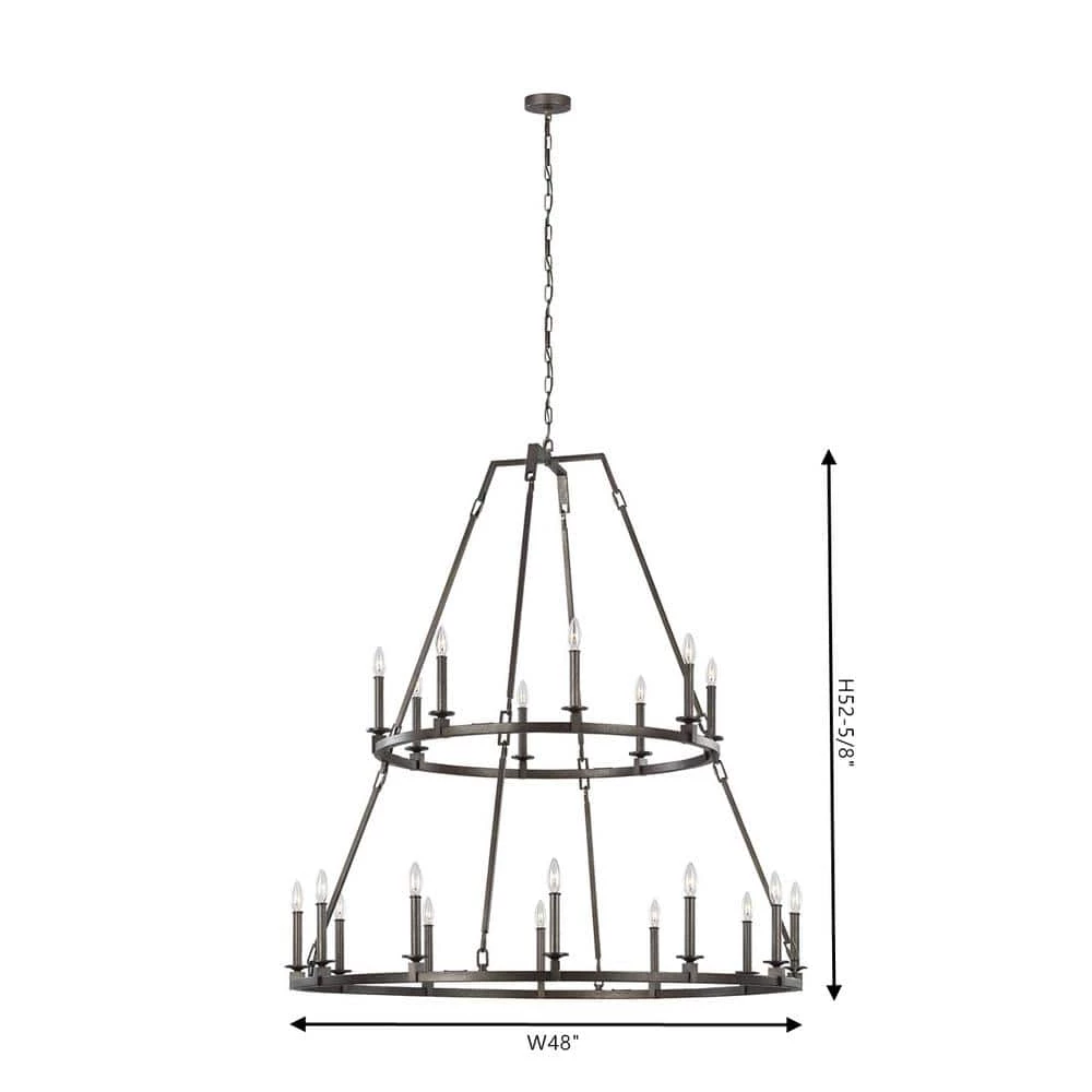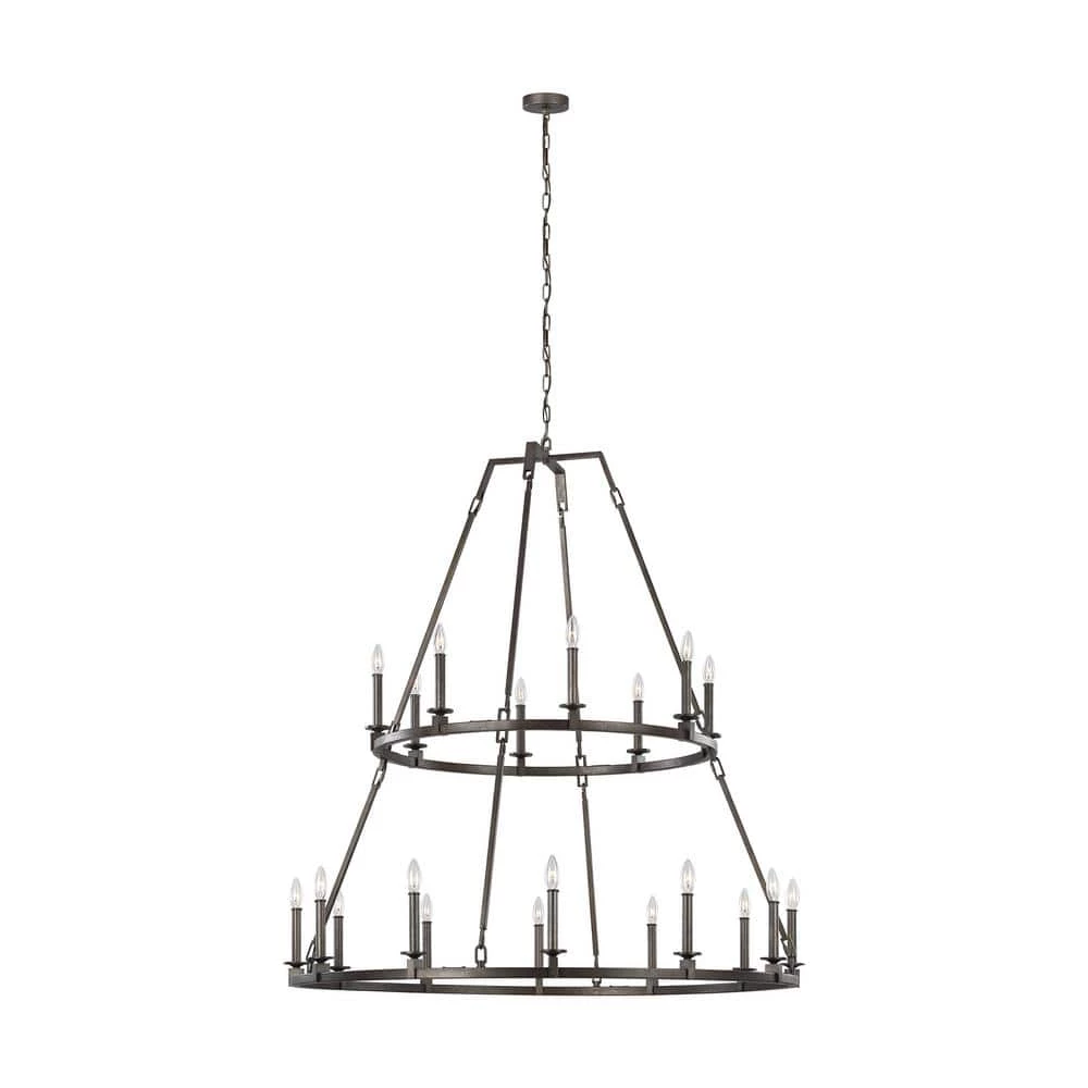 The transitional Landen Collection features chandeliers with our NEW industrial Smith Steel finish. This modern farmhouse collection is versatile enough to fit within a wide range of decor from farmhouse to urban loft. A grand 53 in. high two-tier chandelier makes a dramatic statement.