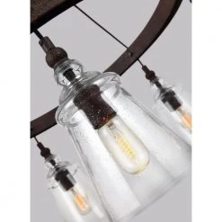 - Contemporary take on historic, industrial designs, these transitional chandeliers feature multiple corded pendants with clear seeded glass shades for rustic charm