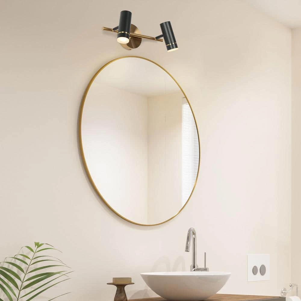 Choose the LED lighting fixture to define your futuristic lifestyle. Eco-friendly and energy-efficient, this 2-light industrial wall sconce with black and brass gold accent is a wise option for you to update your house. with prominent luminous efficacy, the modern wall lighting fixture with adjustable heads offers directional bright lighting and saves more energy than the equivalent lighting fixtures. The simple modern design is perfect for your bathroom, powder room, hallway or entryway to pair with mirrors, tables or artworks, creating a comfortable space for you.