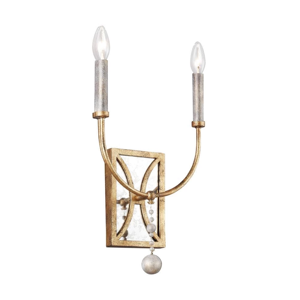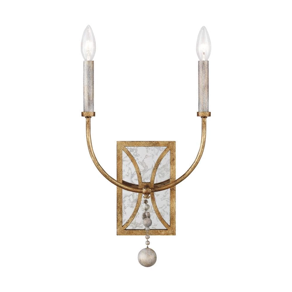 The Feiss Marielle 2 light wall sconce in Antique Gild provides abundant light for your bath vanity, while adding a layer of today’s style to your interior design. Sweeping lines, natural wood beads and gold leaf accents combine with our new Antique Guild finish to give Marielle a chic, French Country look. The assortment includes a 12-light chandelier, 8-light chandelier and a 2-light wall sconce.