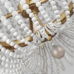 The Feiss Marielle 8 light single tier chandelier in Antique Gild provides abundant light to your home, while adding style and interest. Sweeping lines, natural wood beads and gold leaf accents combine with our new Antique Guild finish to give Marielle a chic, French Country look. The assortment includes a 12-light chandelier, 8-light chandelier and a 2-light wall sconce.