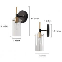 - [Size Comfort] Light fixture: 5 in. (D) 3 in. (W) 11 in. (H), Back plate:1 in. (D) x 4.7 in. (H), Shade: 3 in. (W) 6 in. (H)