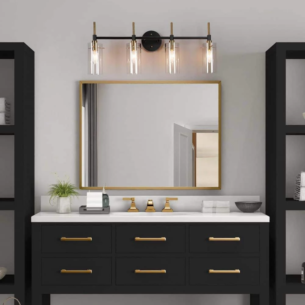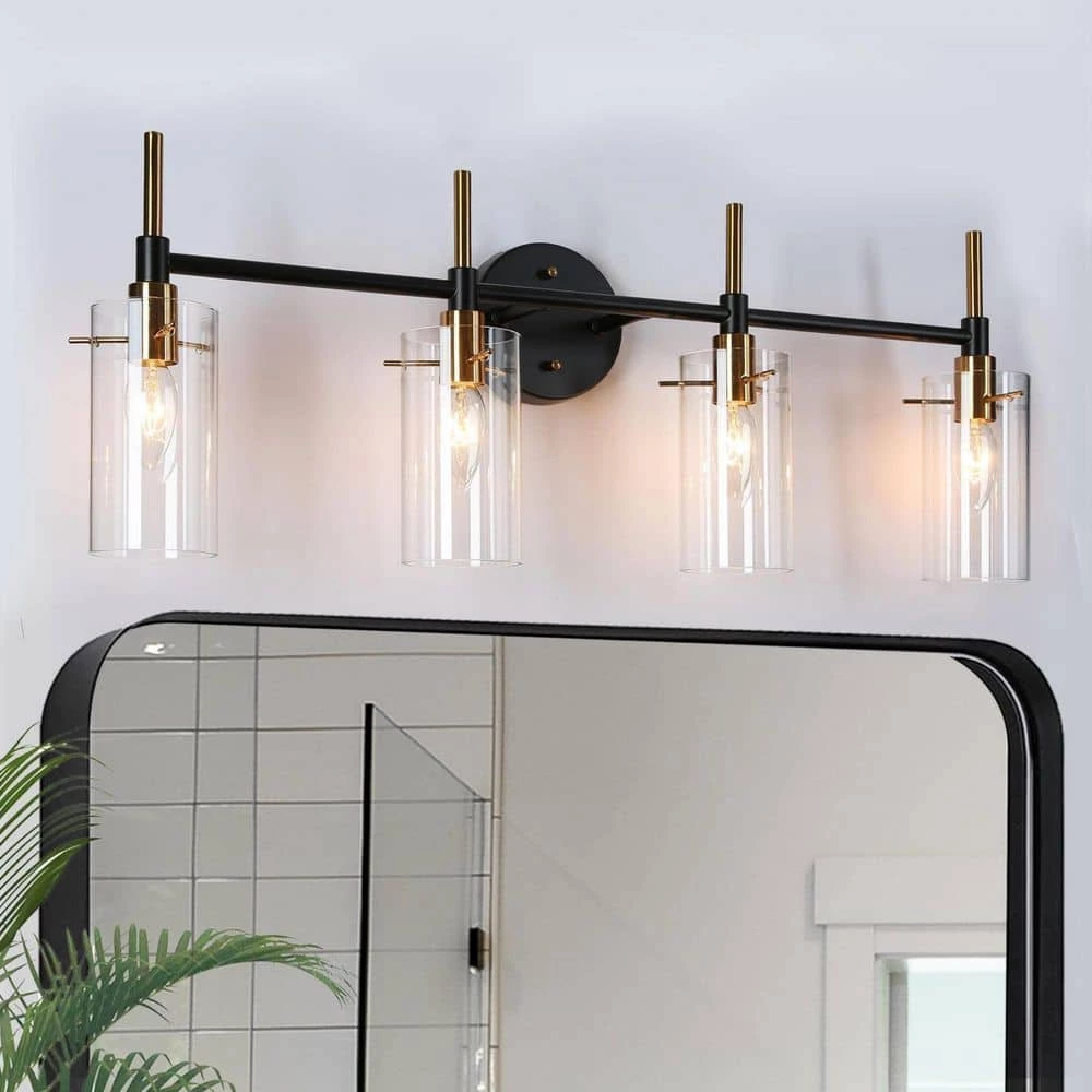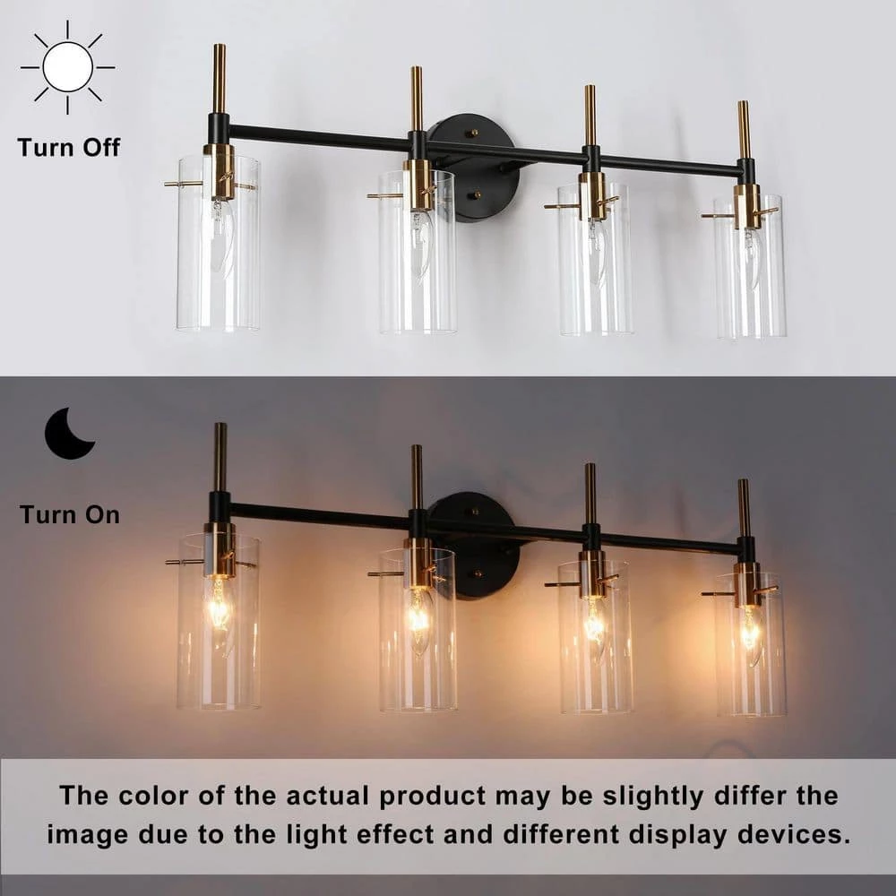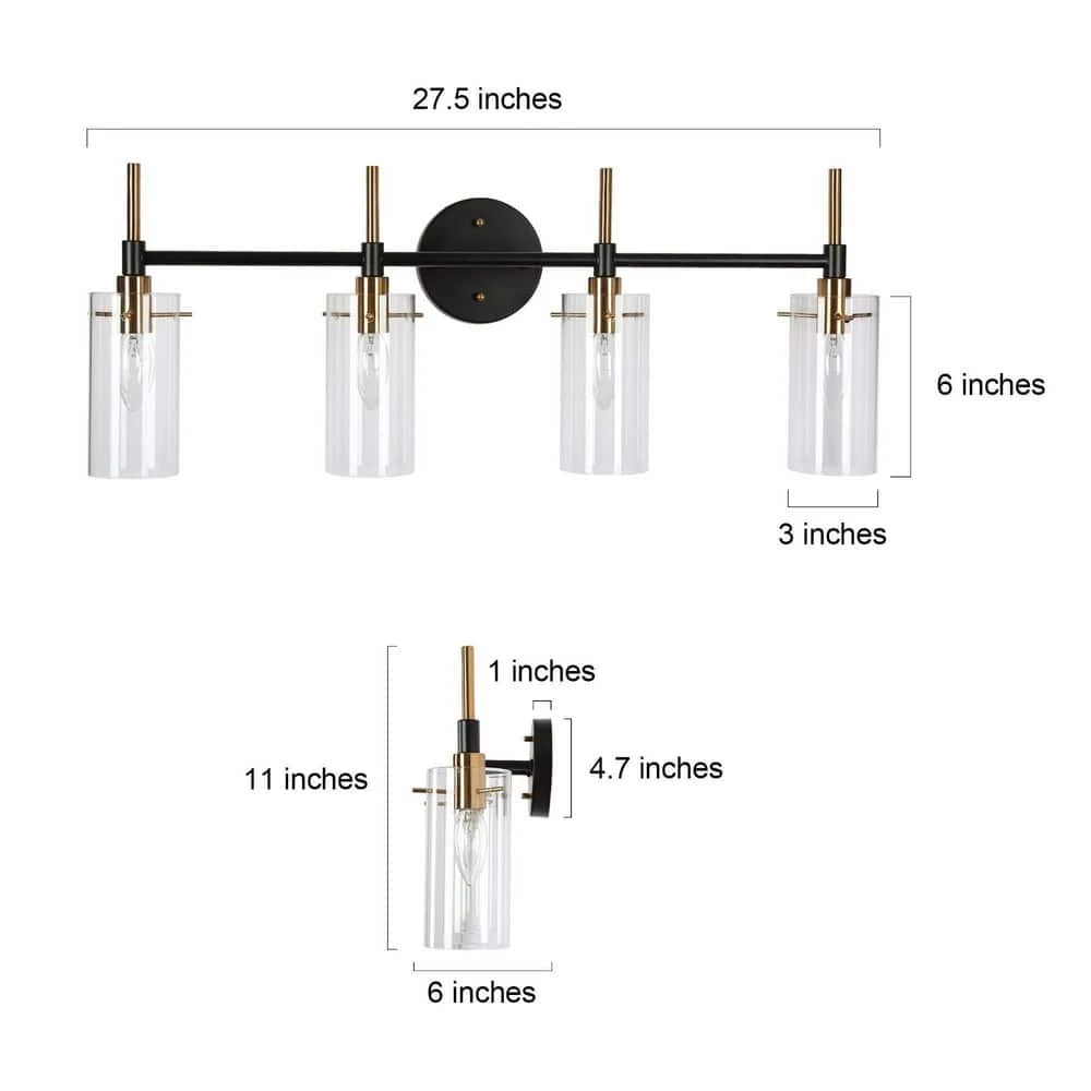 With a very smooth and bright appearance, this 4-light indoor wall sconce lighting features crossed vintage black and polished brass metal bars, presenting an impressive minimalist and slender look. This simple design is suitable for any modern industrial or transitional house decoration in the bathroom, powder room, entryway to pair with mirrors, tables or artworks. Believe the stylish modern wall sconce vanity lighting will match your existing furniture well and create an understated yet stylish living space for you.