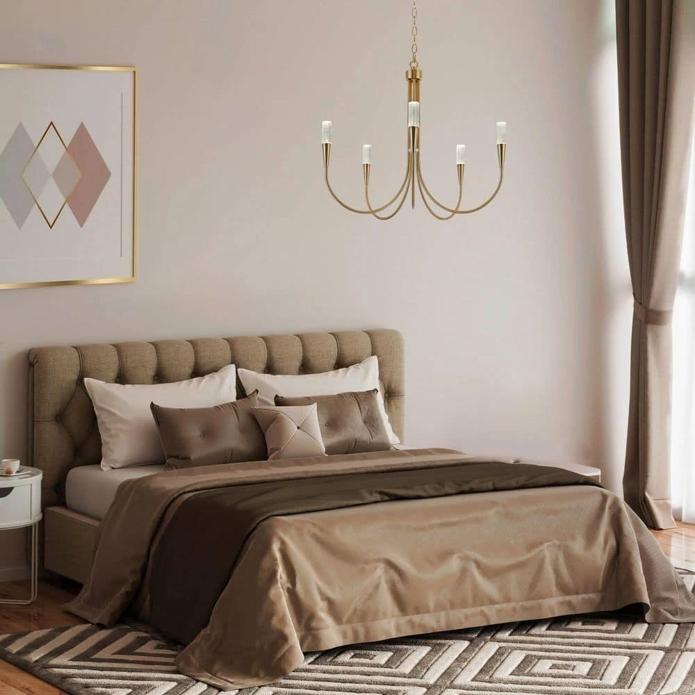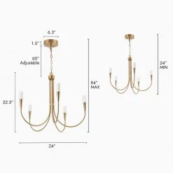 Energy-saving lamps are fabulous choices for futuristic healthy home life. This contemporary chandelier featuring a minimalist linear design reflects a clean and bright life attitude. Featuring acrylic LED lighting, this modern farmhouse candlestick chandelier provides your space with bright warm white light and saves more than 80% of energy than a typical incandescent fixture. The brass-plated finish adopting superior electroplating treatment presents a better texture as well as long-lasting glossiness, highlighting any modern house decor in your bedroom, kitchen, dining room, foyer, and so on.