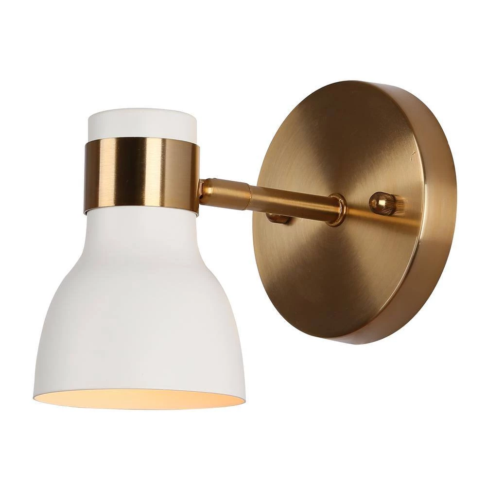 The modern brass gold wall sconce is the perfect hardwired light for your bedroom, bathroom, home office, living room, or any indoor area you need wall light. This light piece is made from high-quality metal and would surprise you with its contemporary design. This fixture comes with a round canopy that measures 4.7 in. W x 1 in. H. The perfect size allows you to choose anywhere you need a wall light. The white shade creates a clean, simple, and stylish temperament.