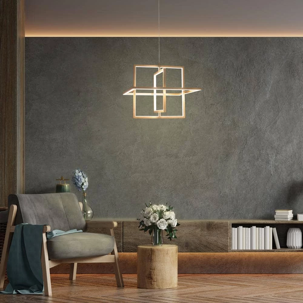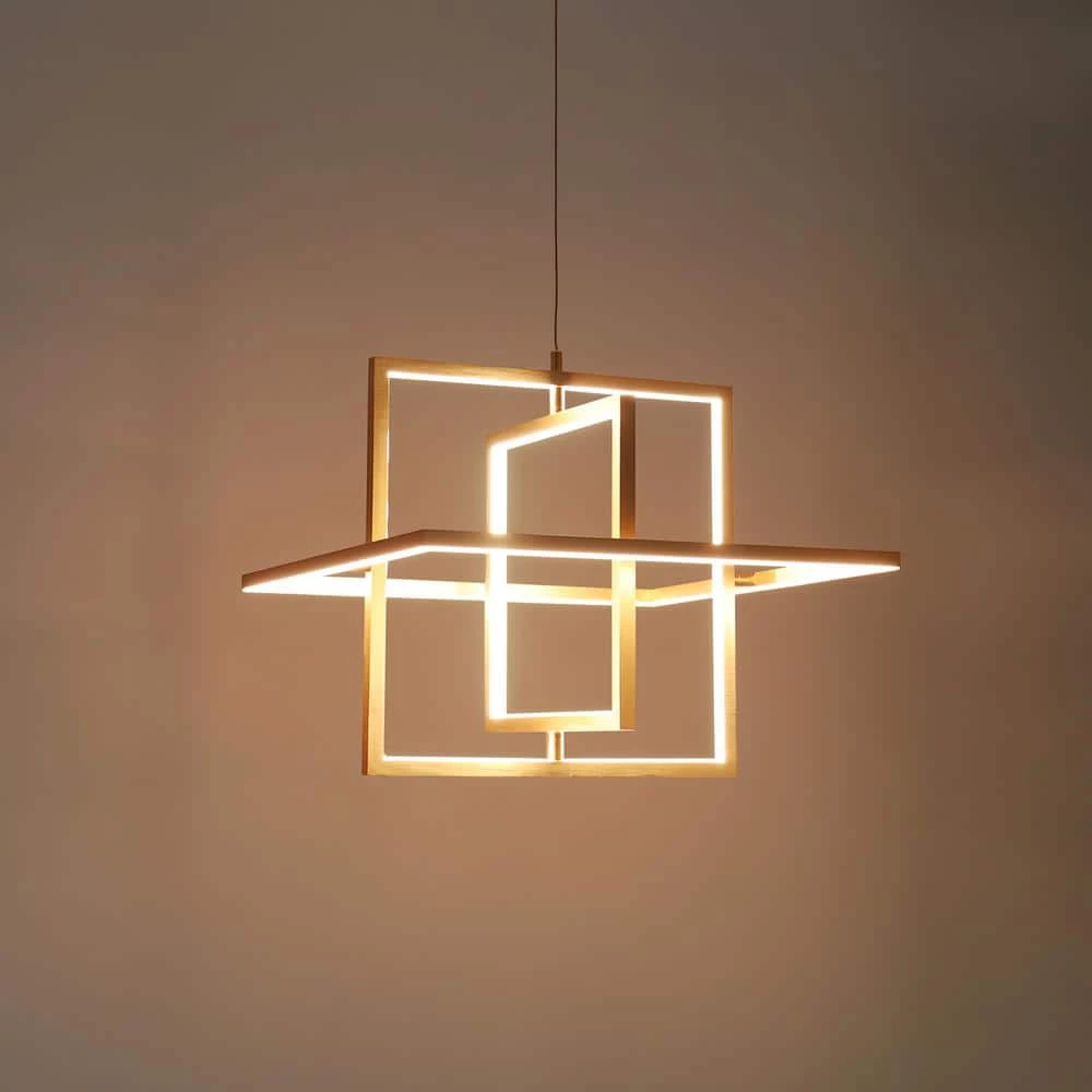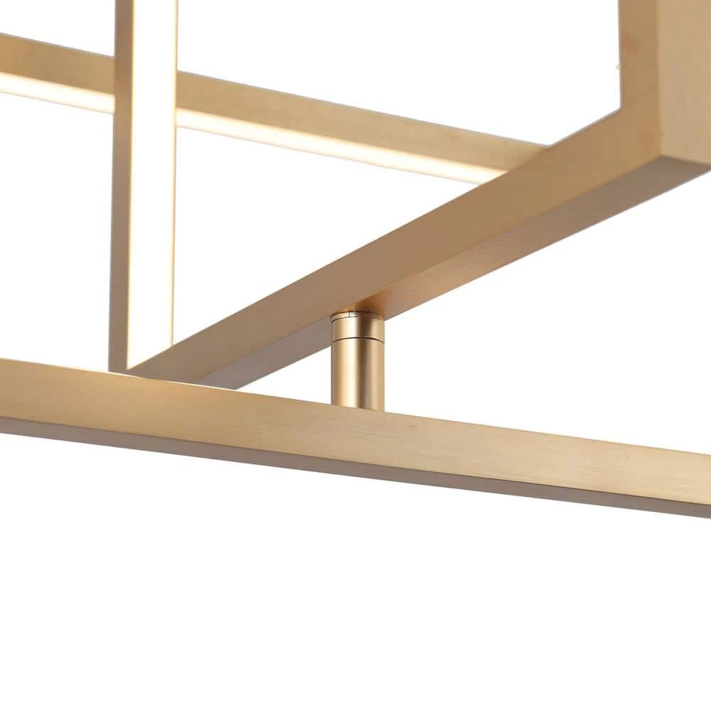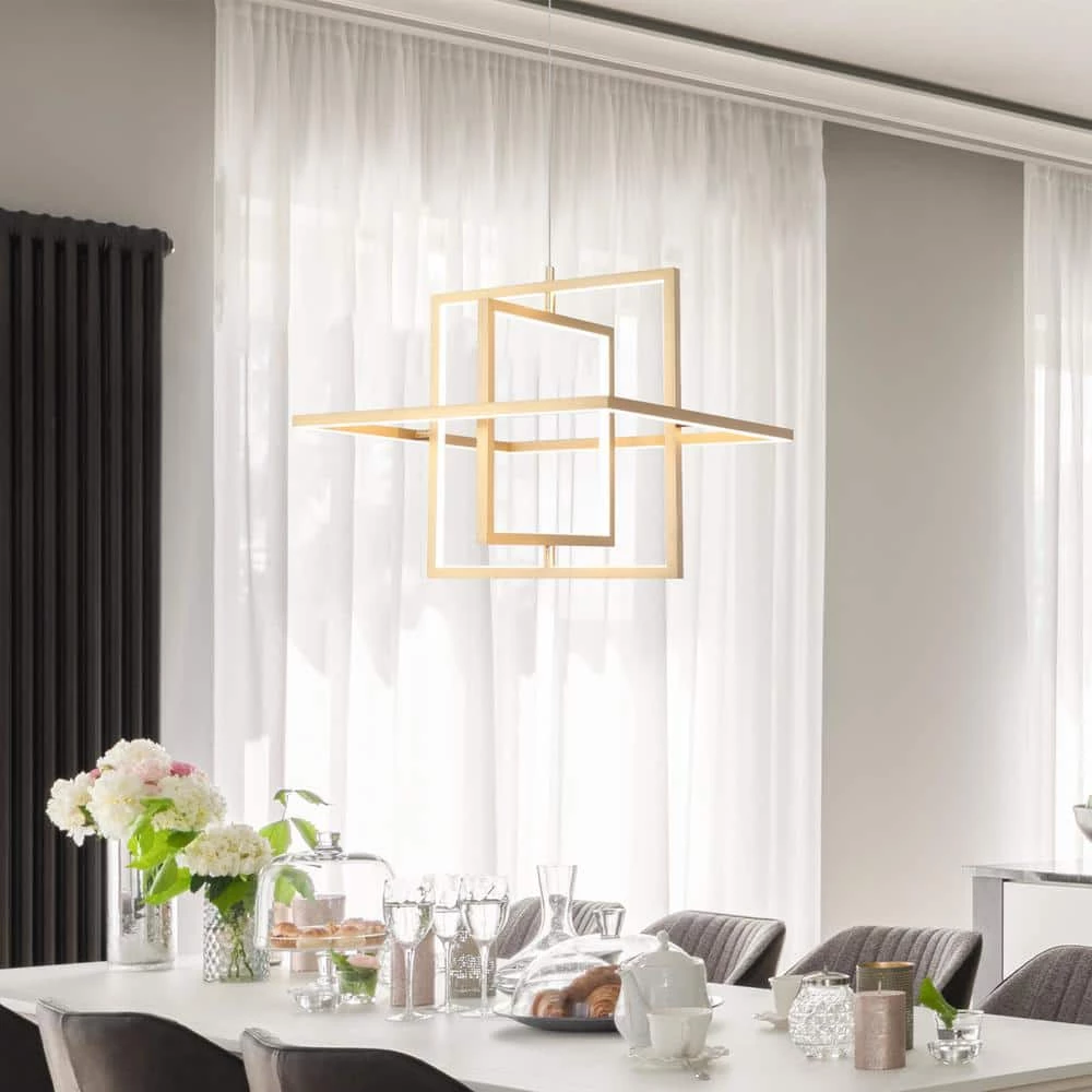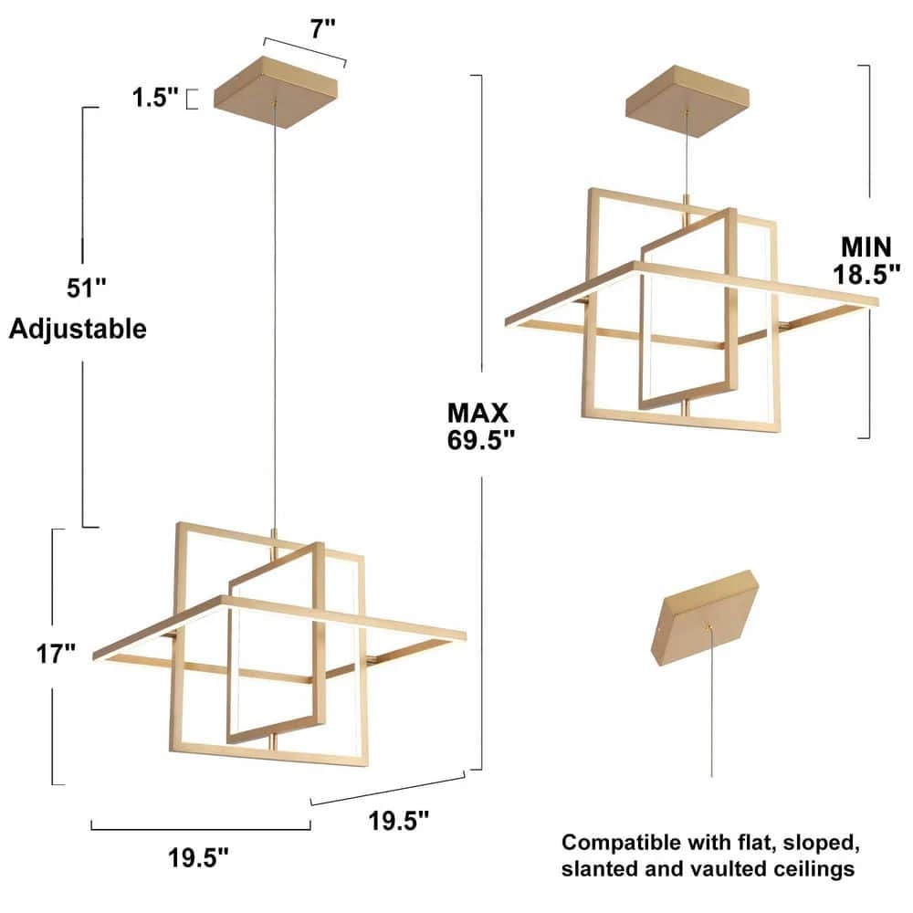 A minimalist square design with integrated LED brings a feeling of high fashion and understated luxury. This 3-light LED chandelier is an innovative fixture to embellish and light up your house. The three layers of geometric design make a simple but creative hanging ceiling light, perfect for your bedroom, living room, foyer, entryway, hallway, stairway, and kitchen island, better installed with 2 or more in a row at a suitable height to present a perfect visual effect. Choose the modern farmhouse gold LED pendant light and start a new eco-friendly healthy lifestyle!
