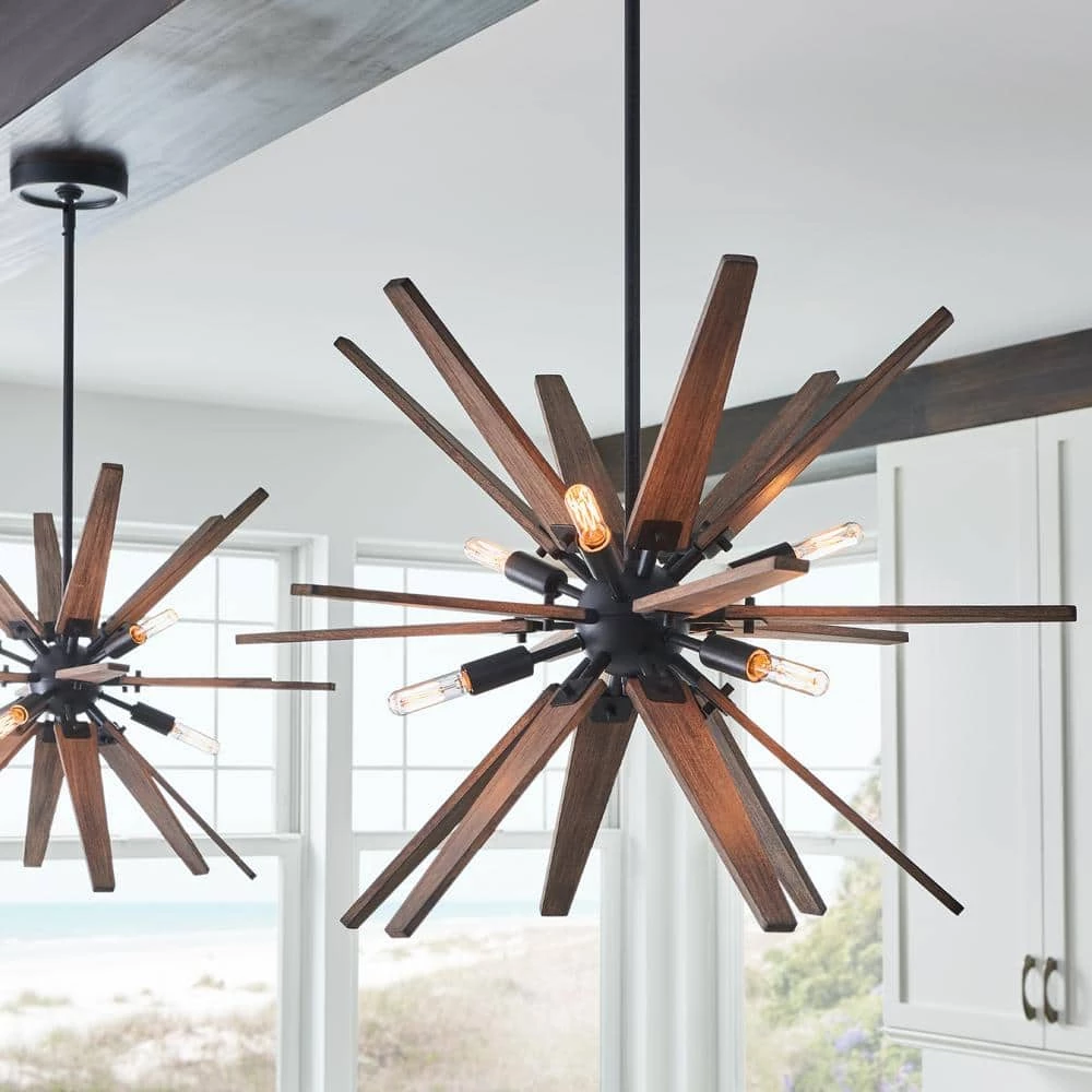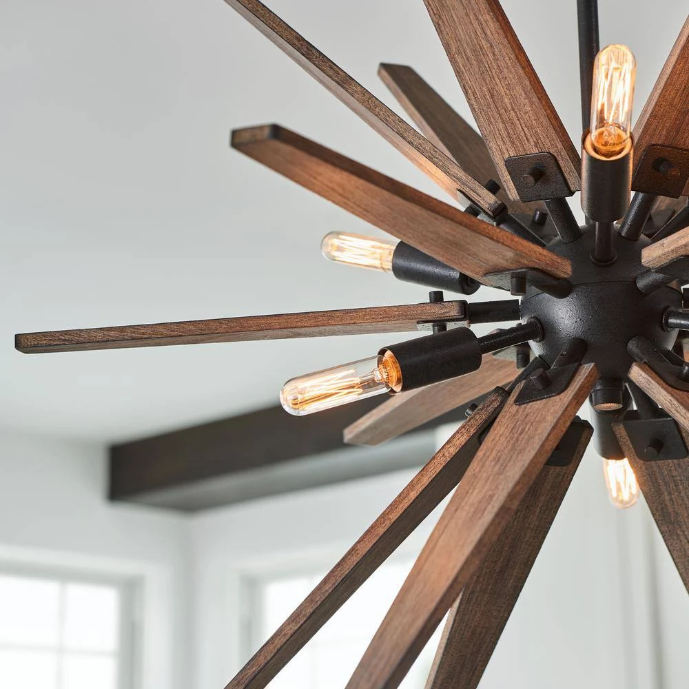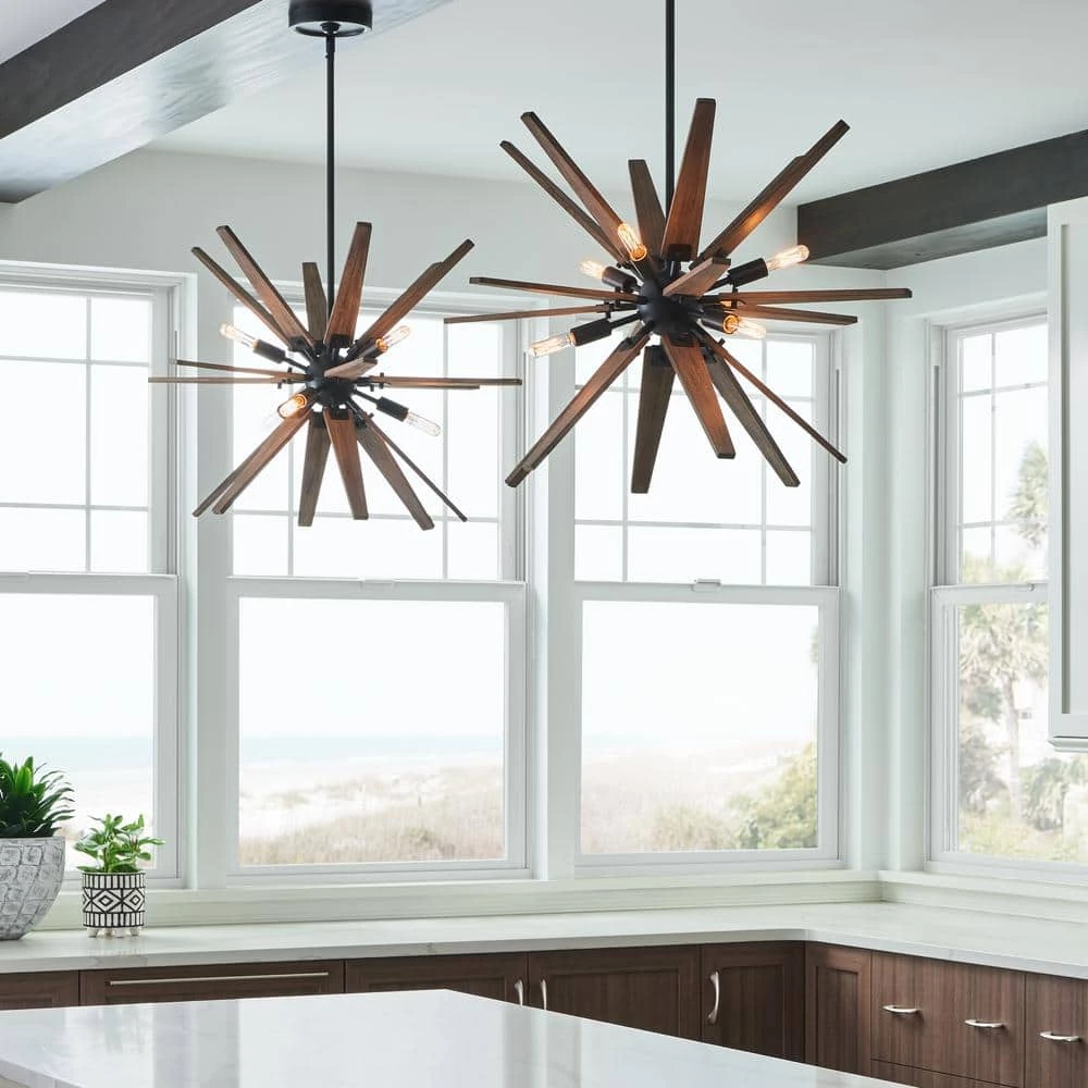 The Thorne Collection is daring and playful with a delightful two-tone mix of luxury materials; modern Chrome with clear acrylic “bursts” or finely lacquered Weathered Oak Wood with Dark Weathered Zinc. Thorne is a fun, modern interpretation of a starburst and will become the focal point of any space. The collection includes six-light pendants in two different finish options.