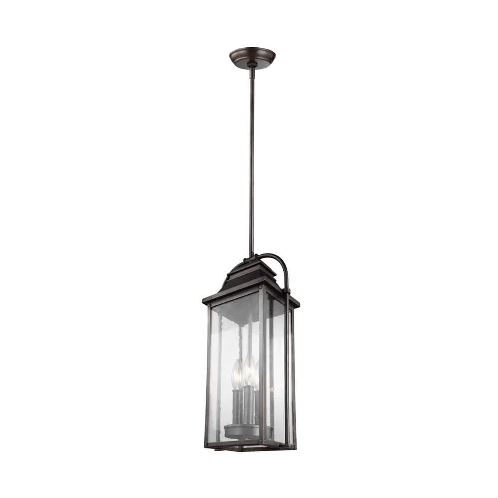 The Feiss Wellsworth three light pendant exterior light fixture in painted brushed steel enhances the beauty of your property, makes your home safer and more secure, and increases the number of pleasurable hours you spend outdoors. A subtle interplay of traditional design elements and nautical influences creates the charming visual approach. Cast aluminum construction ensures durability.